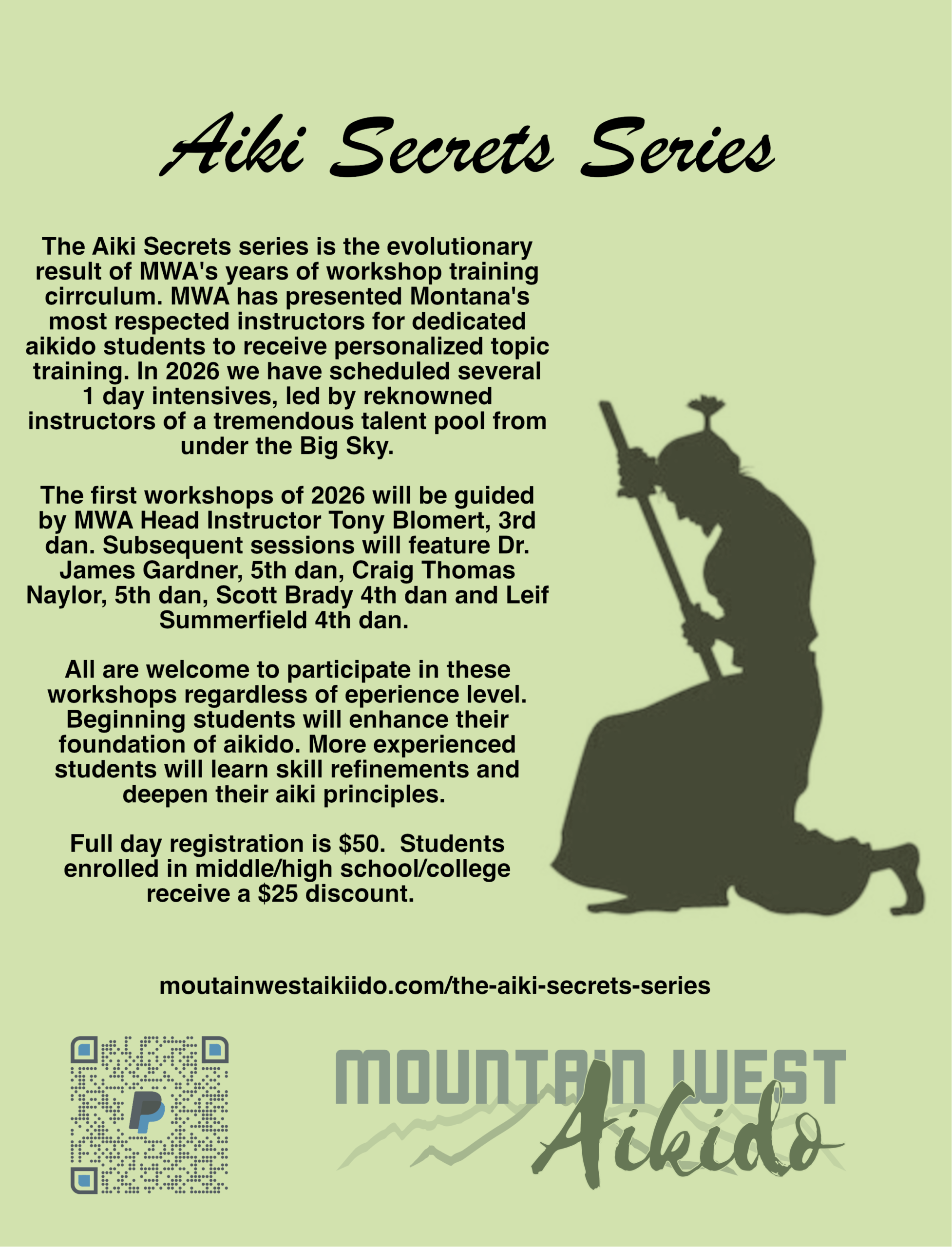 Check back here for information or MWA’s Calendar of Events about the other Aiki Secrets Series session dates.